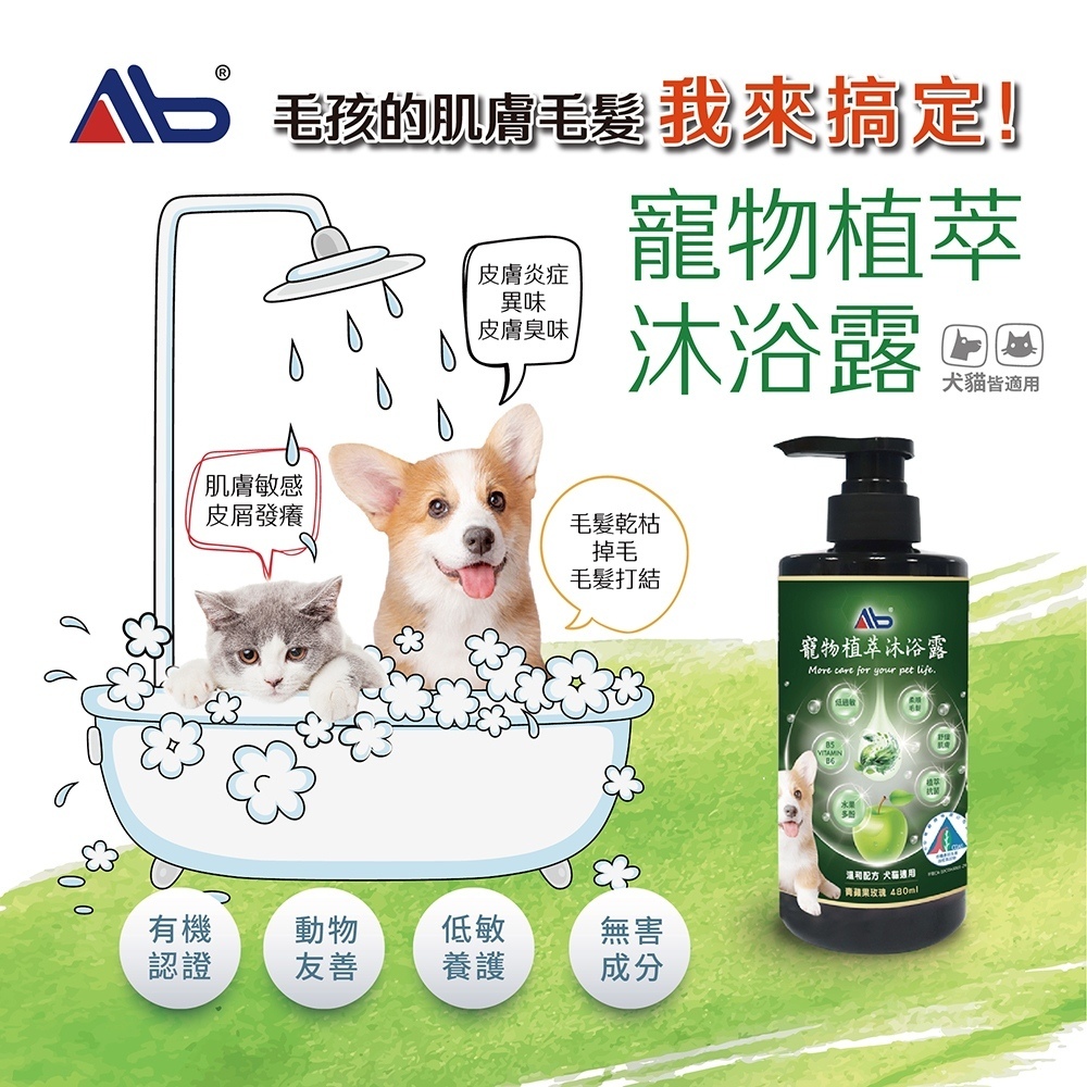 組合內容: 【AB】寵物植萃沐浴480ML(1罐)+寵物專用吸水毛巾45*70CM(1件)